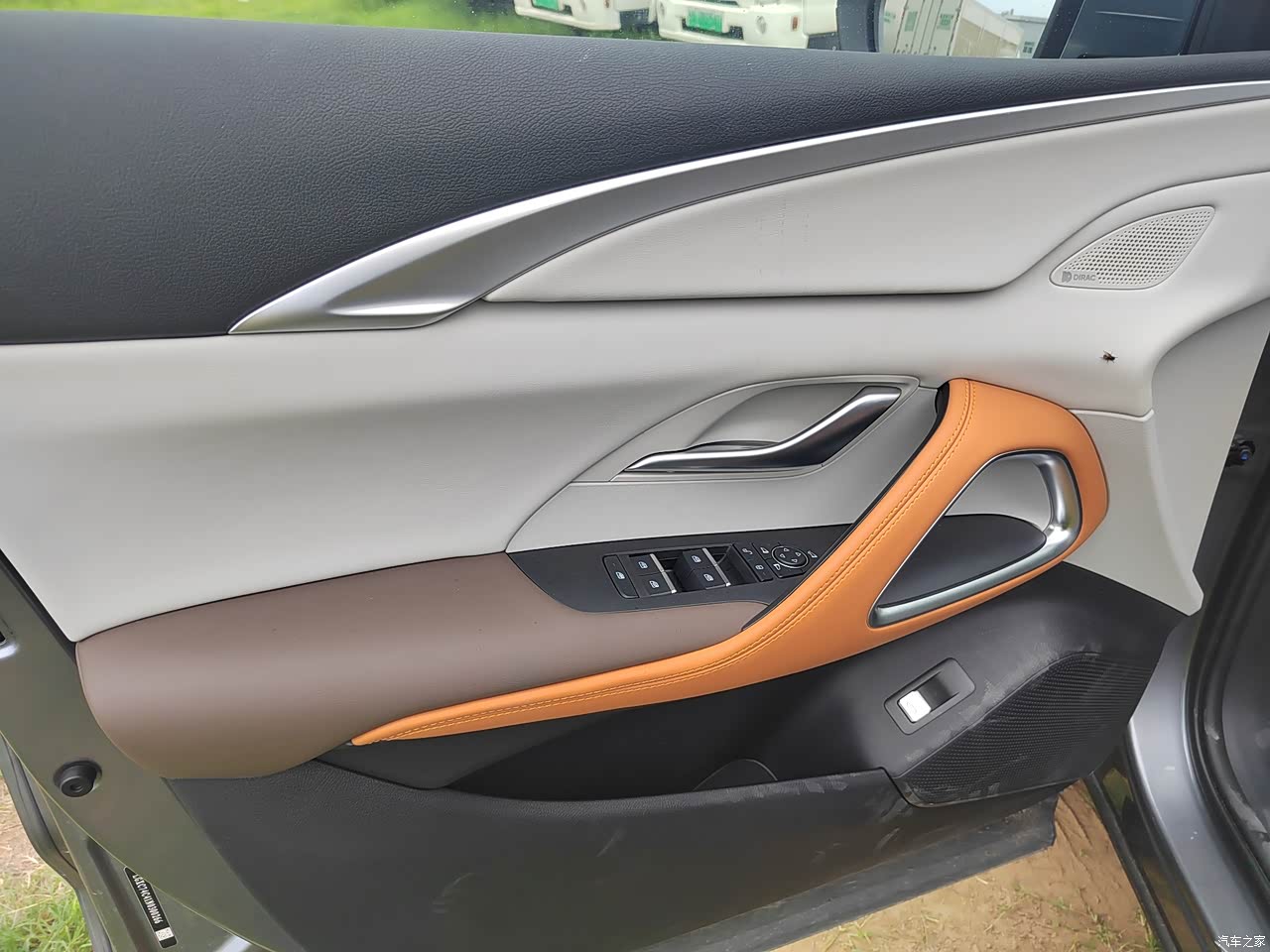 内饰浅色调为主,棕色参杂米色。软包比较全,门板 中控台都包裹了。