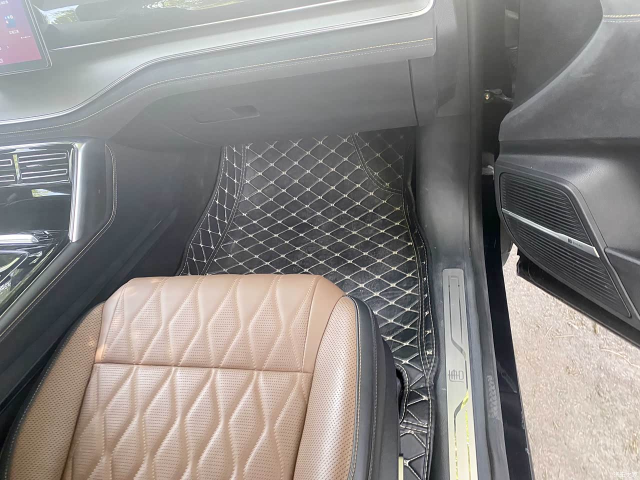 内饰颜色暖色看着舒服,用料好,挺有质感的,配置也比较高,胎压监测,前后驻车雷达,360度全景影像,12.8英寸的中控屏,科技感足。