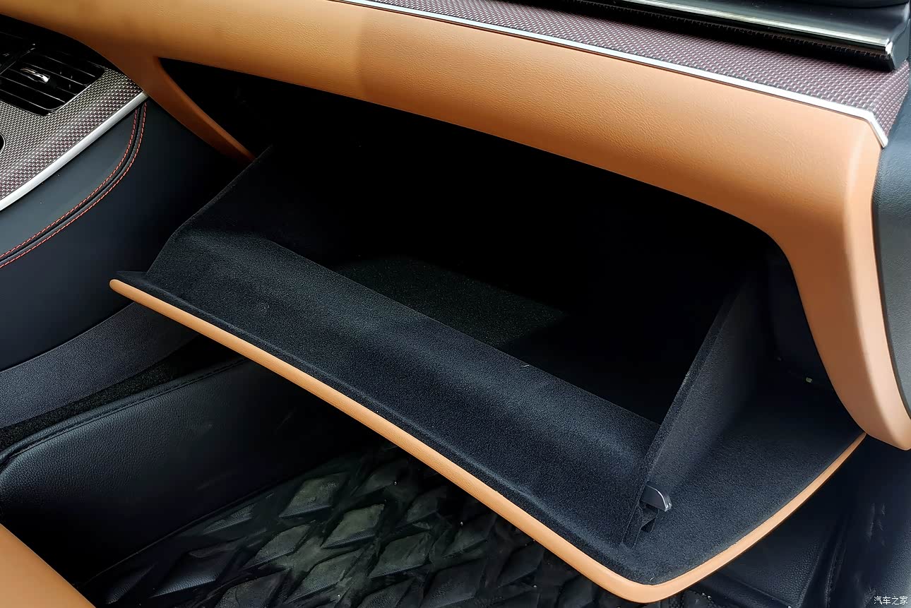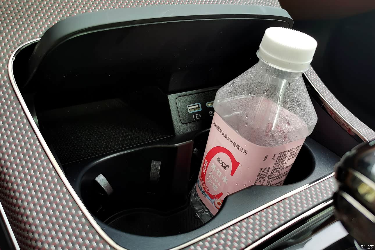 车内储物格和手套箱都有挺贴心的设计,带植绒的表面很显高级,杯架上都配了限位装置,扶手箱内还有分区域隔断设计都很不错。
