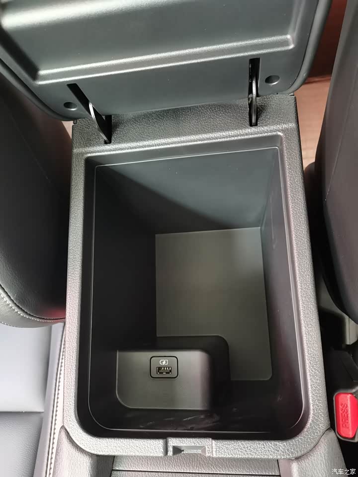 这个车的一个手扶箱空间还是比较大的,而且里面还配备了一个手机充电口,加上他这个放手机的位置,这个设计的比较好,特别的宽敞,里面还有一个防滑垫,特别的人性化设计