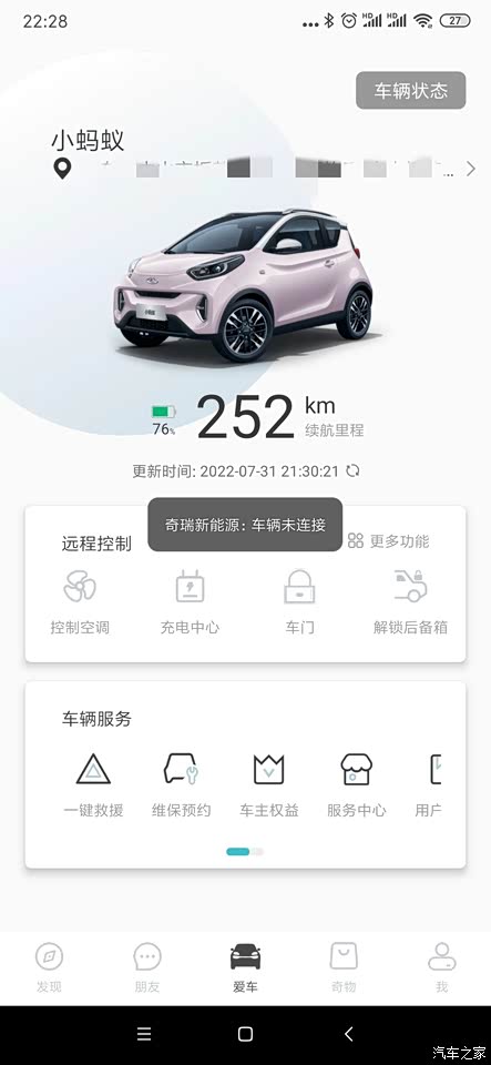 这个奇瑞新能源APP也是奇葩,不知道是不是车要启动的时候才能连接起来,永远都是未连接,没有一个功能可以远程使用的,售后又叫我过去看看