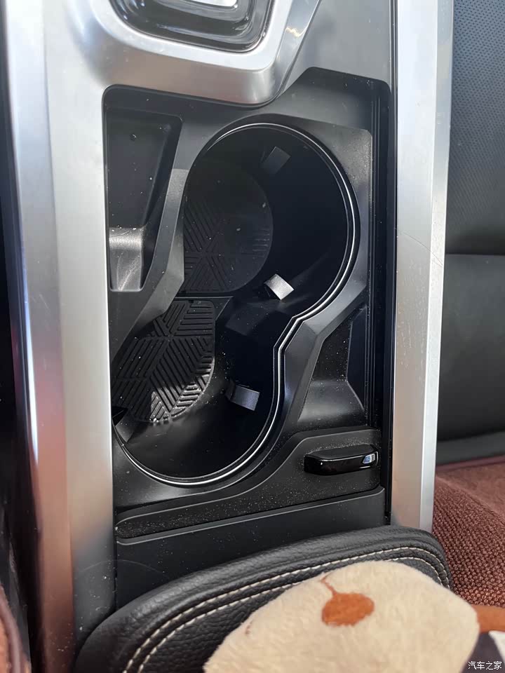 驾驶室的顶部靠窗边有个眼镜收纳盒,可以收纳眼镜或者墨镜。水杯槽平时陈放杯子奶茶饮料等,不用的时候上面有隔板可以关上。
