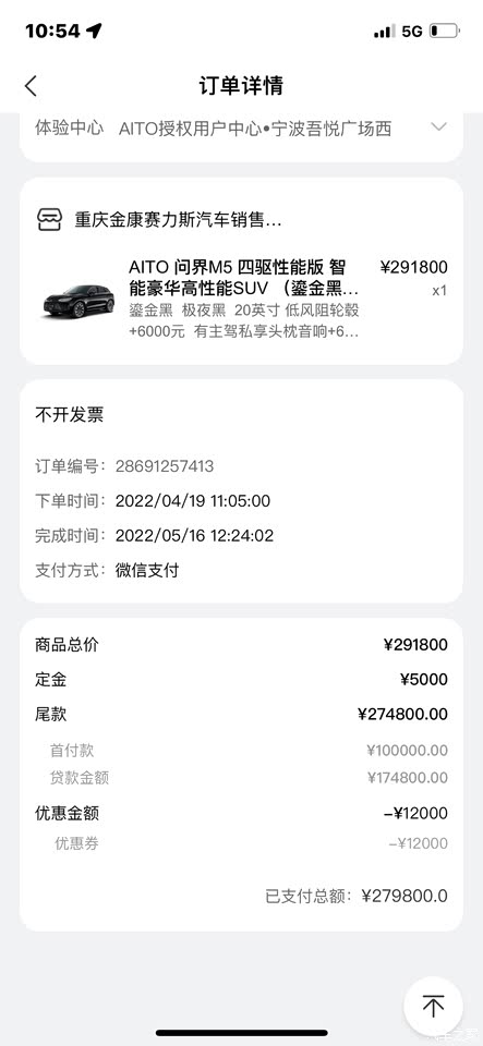 1、HUAWEI SOUND音响。1000w的喇叭听歌还蛮惊艳,底鼓很足,但是贝斯稍微有一点糊,听不太清楚根音,可能是厂家为了讨好大部分听众的耳朵,总之是在我试驾的车型中最好的,个人也比较喜欢仿窝窝的那个中置喇叭,很有设计感。最令人惊喜的是头枕音响,在听音乐的时候不会因为导航声音打断,这点细节的设计让人觉得与大多数新能源与众不同。 2、鸿蒙座舱。车机里用过最流畅的,交互体验最好的,拓展硬件最多的,尤其是界面很简洁学习成本很低,虽然应用很少比不上安卓平板转化的车机,但是后期的“超级桌面”直接炸了,再也不用担心应用少了。我本身是苹果粉,买这个车还真不是华为加成,只是产品力够硬。 3、底盘调教。虽然偏舒适调教,后排的乘客过颠簸路面有点像开船,但是开起来真的很高级,有一次叫代驾,他说自己是汉的车主,开问界地盘真的很有高级感。再加上底盘全是铝合金的材质,在看不见的地方舍得下本钱是良心企业。 4、用车环境。用车环境加充电条件是这个车的必须考虑因素,我上下班40km,周末120km自驾游小短途,还有节假日800km的跨省长途,上下班和自驾游基本上用电,回家可以用油,高速路上等充电桩是很让人崩溃的事,毕竟节假日就那么几天。这种出行环境让我更加坚定了增程式,至于说的什么dhp-ph和dmi技术更先进,但我更相信大嘴的人品。还有就是充电桩,我的住所和工作单位都有充电桩,让我很放心使用,两天到三天一冲。 5.可以改装黑武士,看了下别的车的品牌,不是需要加钱就是没有黑色,只有问界的黑武士改起来比较漂亮且容易,华为和金康赛力斯的设计师审美一直是在线的。有的人不喜欢圆润的外观,但是相比于那些花里胡哨的追求所谓的科技感的车型真的多了一些稳重。 6.提车周期短。2022年4月19下定,5月17日锁单,只是在提车的时候建设银行的贷款经理给我弄错了金额,发生了一些小小的不愉快,整个交付过程可能因为出货量太大的原因交付的比较仓促,还是有提升空间的。当时跟销售谈的时候送了一个华为手表3pro和轮毂头枕音响两个权益,上牌费1000元免掉,再加上保险费7900落地28.6w,是符合心理的预期,再加上本地政府这边有满10w减3k的代金券,整体下来28.3万,还是很划算的,没有超过30w。