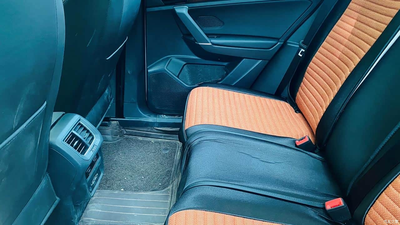 不要觉得这个车的个头比较小,但是里面的空间绝对让你大吃一惊,第二排的距离基本上和迈腾差不多,但是迈腾车长4米9了,这个车才4米5多,而且后备箱的空间也足够充裕,另外越野车也比较高,后边做满三个人,也不会觉得拥挤。