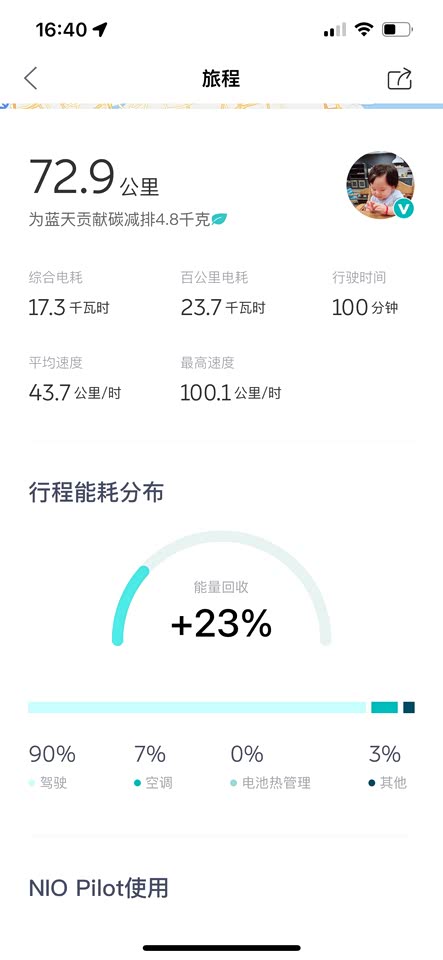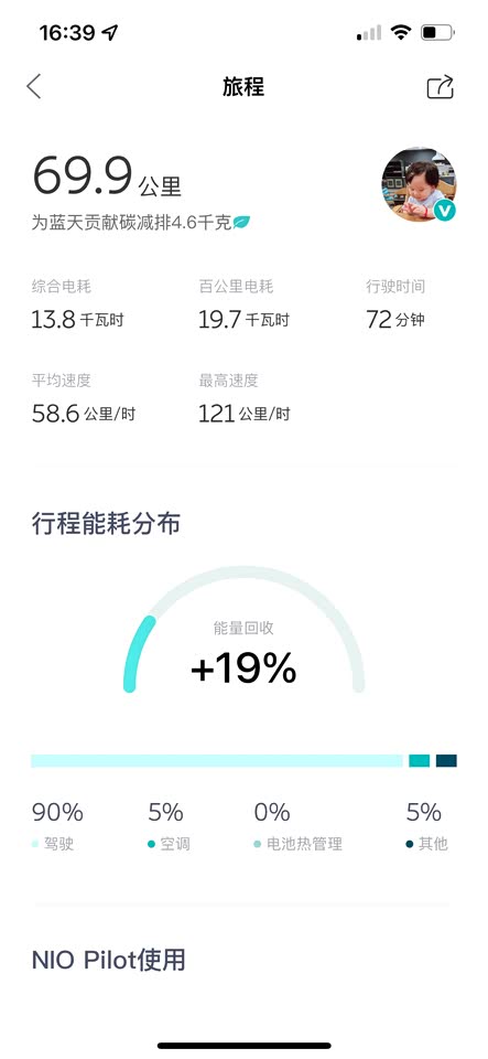 蔚来一代产品的电耗确实不怎么样,但是辛巴比老八确实已经好很多了,试过老八的代步车,同样的上班路线确实电耗高一些,整体续航一般,但是可接受范围,毕竟蔚来还有一大特色——换电站。这样看下来续航就不是太大的问题了。两张图一个夏天,一个冬天,相同路线,电耗差也是比较明显的。