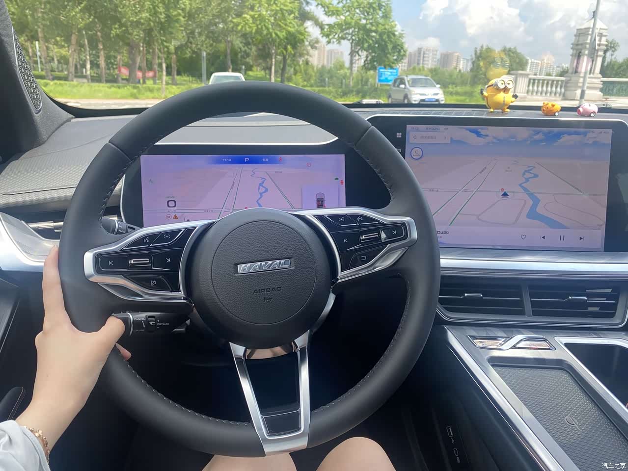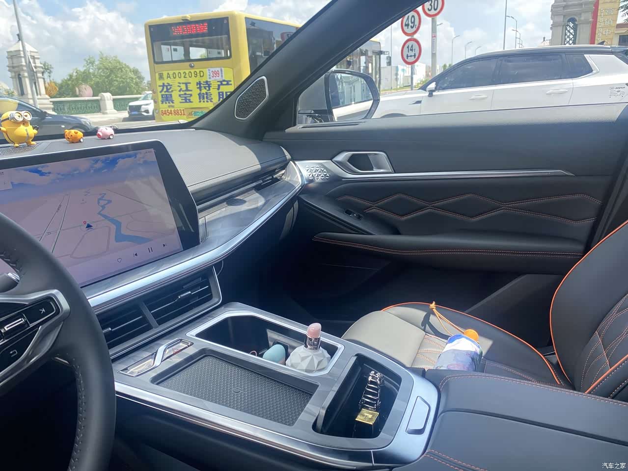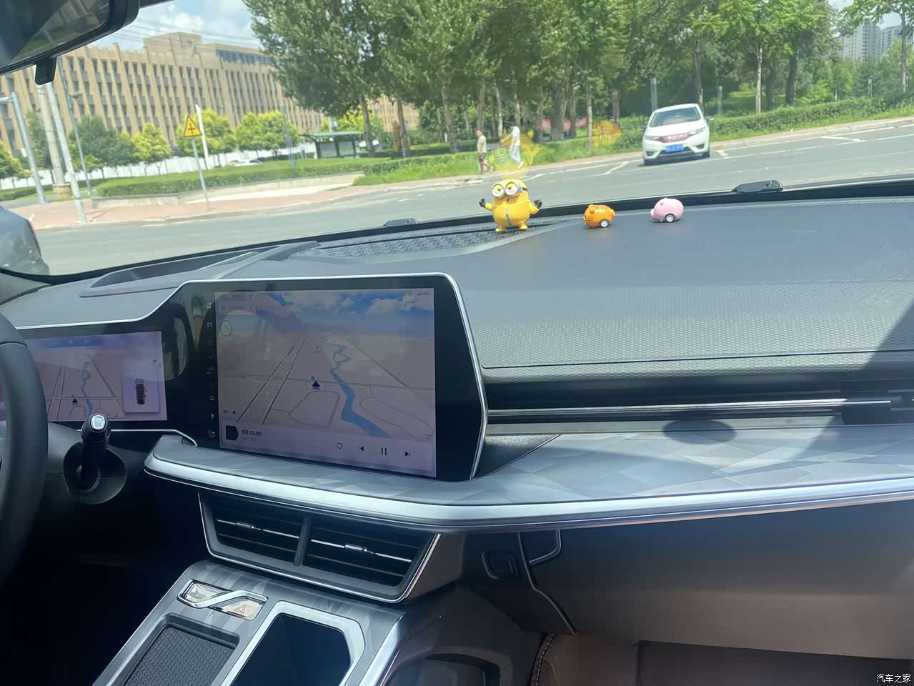 内饰的大屏幕我是真的太喜欢了,而且两块屏幕能实现导航互联,路痴的我除了从家到单位,单位到家,去哪儿都需要导航,现在好了,不用左顾右盼的看手机,眼睛一瞄,路况信息实时掌握,交通情况了然于胸了。