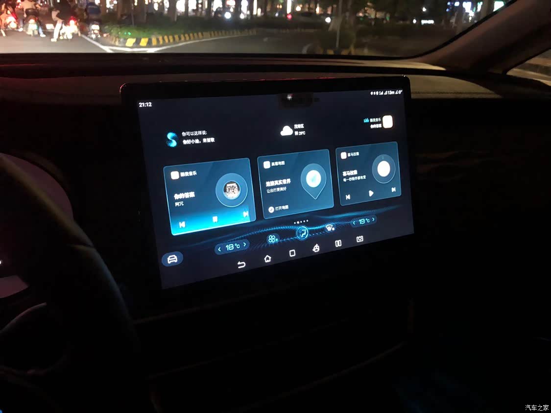 搭载了一个超大的天幕,刚开始认为还不咋地,想弄个卷点天窗,其实使用天窗的时候并不多,后期还担心漏水,这样脸打开了天幕,视觉效果还是不错的,但是南方的太比较大,夏天的话还是感觉有点晒脑袋。超大的天幕,如果晚上去郊外,可以躺在车里看星星,看月亮,支持语音互联,手机互联都非常的实用,尤其是NFC这个功能都不用拿车钥匙了,直接用一台手机就可以解锁,启动了也不用担心忘记带车钥匙了。