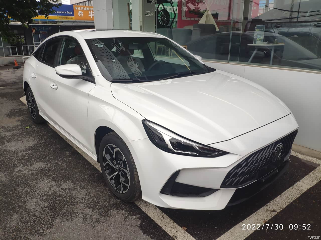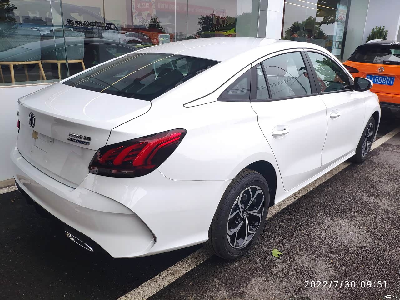外观,名爵5采用了家族式的设计语言。我选择的颜色也很好看,在灯光的照射下,真的很亮眼,而且我觉得名爵5的车身流线型设计很有质感,有一种轿跑车的感觉。同时,轮毂也使用了五幅式的刀锋轮毂设计,并且进行了黑化的处理。