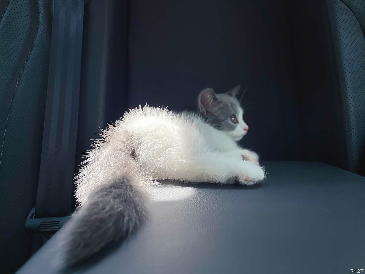 这个扶手可以放下来,正好给我家柚柚睡觉,顺便爆一张车模照🐶