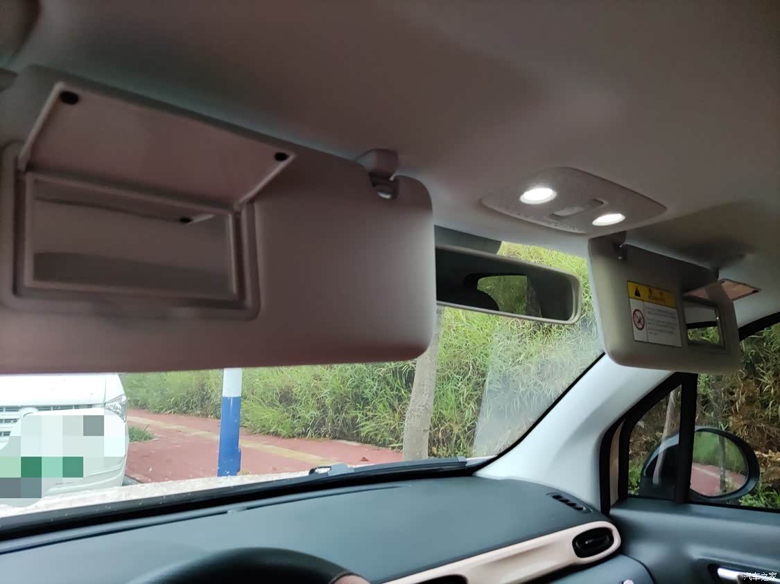 车灯很可爱,囧囧有神的,像个大熊猫一样,我的是流沙粉,据销售说车身是金属漆,pro版天窗,可以透过天窗看城市的路灯,乡村的星空,加分,座椅全皮质,针线缝制,舒适而富有美感,此座椅外颜色和车子内饰搭配完美