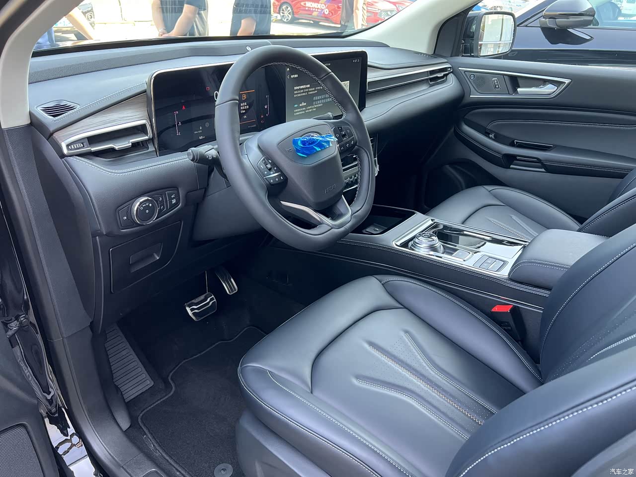 内饰也非常大气,特别是这个屏幕非常高端大气上档次,这个屏幕是采用双联屏设计的,8英寸数字仪表➕13.2英寸中控双联屏。座椅都是皮质的,如果脏的话拿抹布一擦就好了。就是皮质有点味道,不过新车子多多少少都有点味道的,回家开一段时间散一散就好了。