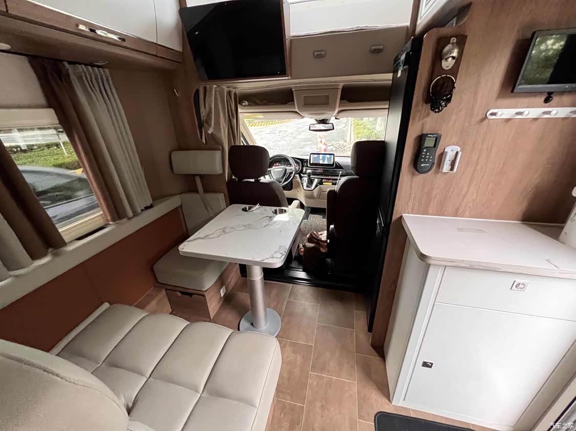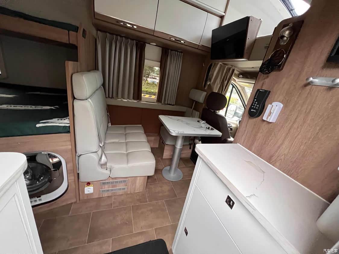 说到这台车的内饰,其实并不是它的重点,车内的话功能还是很多的,比如说冰箱,床,电磁炉等等,这些功能用起来的话都是很顺手的,但是车内的隔音效果确实是比较的一般的了,特别是开到高速上,噪音挺影响车子的舒适性的