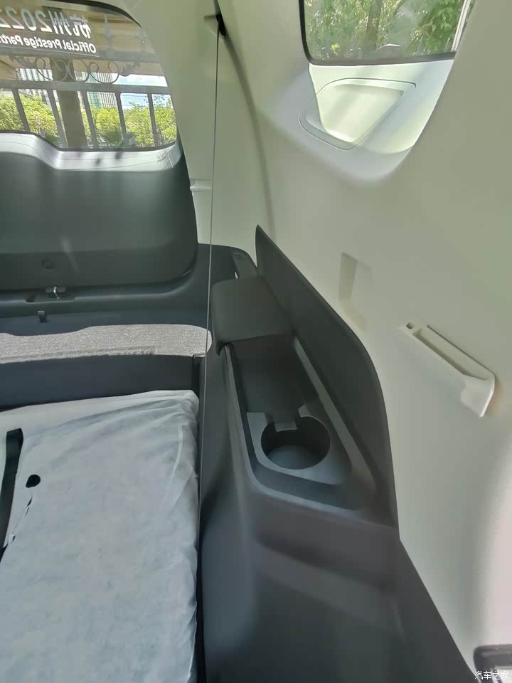 中央的储物格可以放置一个大一点的保温杯和一瓶矿泉水吧!车的扶手也可以放置一瓶水吧。
