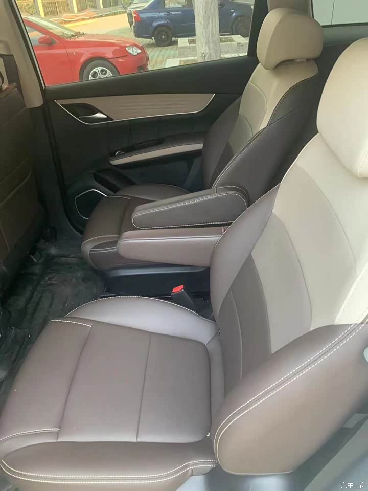 唯一在整个内饰中比较有特点的是它的座椅配色,底下是巧克力一样的颜色,接着是咖啡色,然后是米白色,是一种渐变的格纹的配色,底下耐脏,上边明亮,是我的审美。