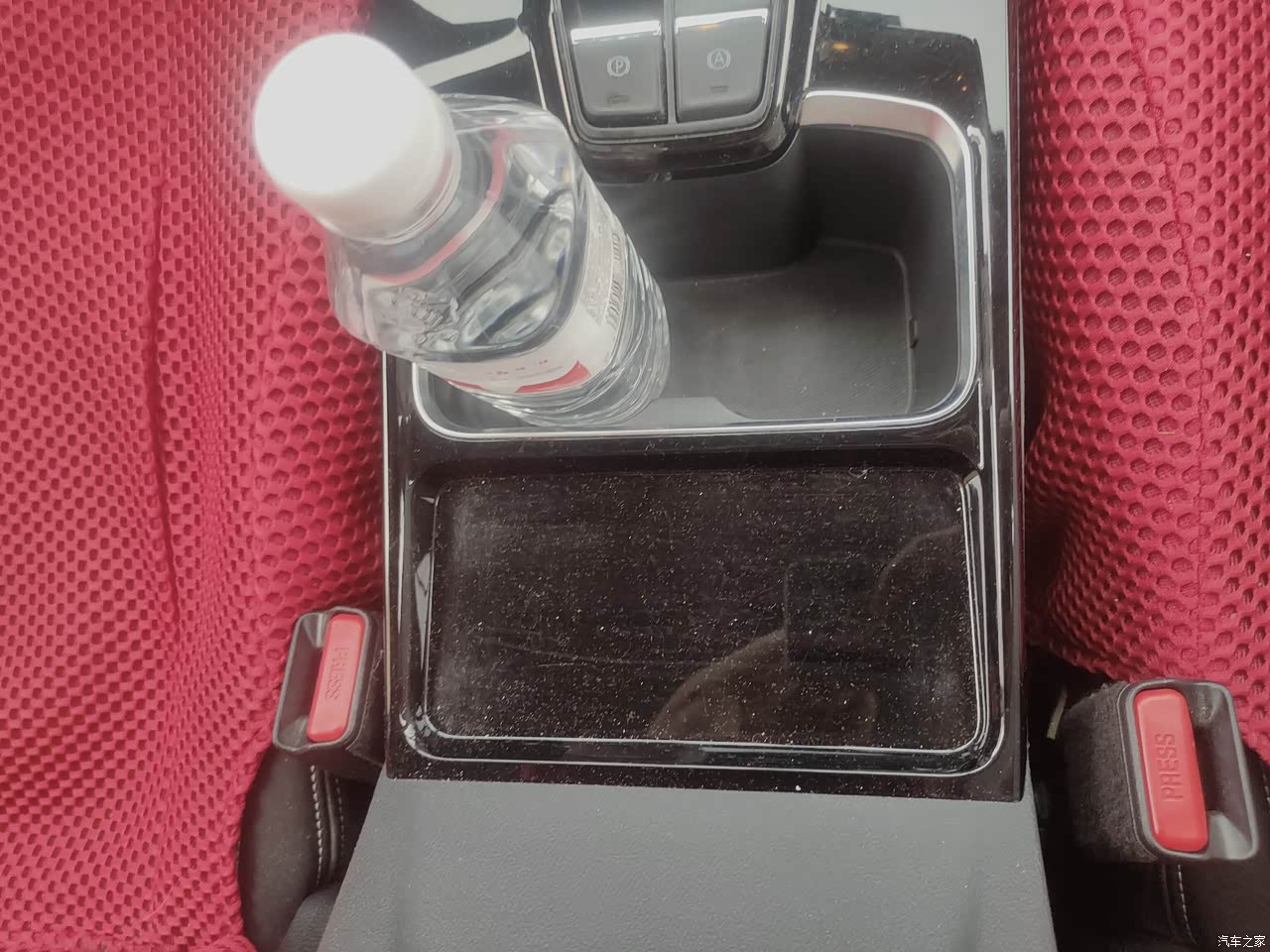 中控很容易找到放手机的位置,扶手箱空间也不小,手套箱打开带阻尼,空间够用,门板储物空间设计合理,二排也有放手机的手机槽,第三排也有杯架跟USB充电口。