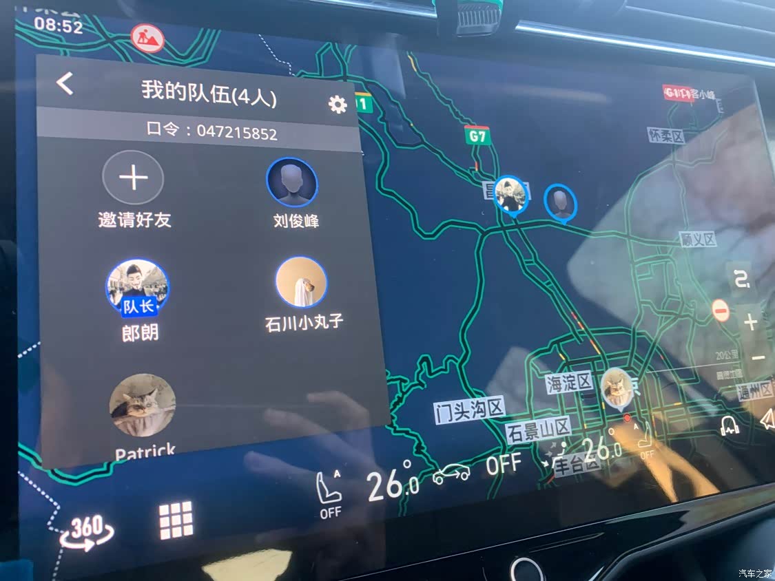 车载导航优缺点明显,正如之前所说的版本过低的不满,但优点也很明显,在关联微信之后,可以将微信里的地址发送到车机,方便省事,并且在车机导航里,还可以组队出行时共享位置,这点非常实用!