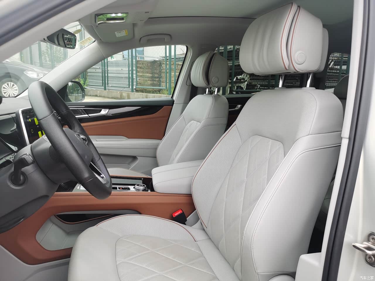当初纠结买这台浅色还是黑色,最后觉得浅色更显大,所以要了这台银色。前后灯光都是贯穿的设计,前脸厚重有质感,搭配上银色轮毂显得大气威武。车灯做工精致,亮起来的时候可以感觉到灯带光感细腻又柔和。轮毂比较大是银色哑光面的。从外观看,车身做工尚可,配件之间缝隙小。