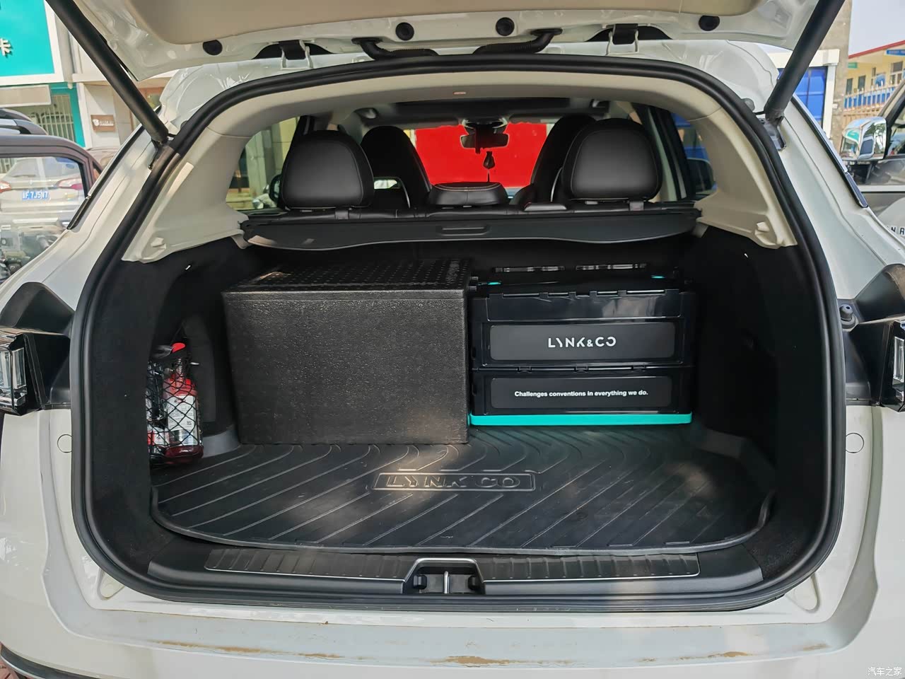 领克后备箱配备了电动尾门,很方便,在后备箱大小来说,后备箱容积很大而且后排座椅可以完全放平。这再搬运大件物品时候带来了方便。也可以躺在后面看星星。