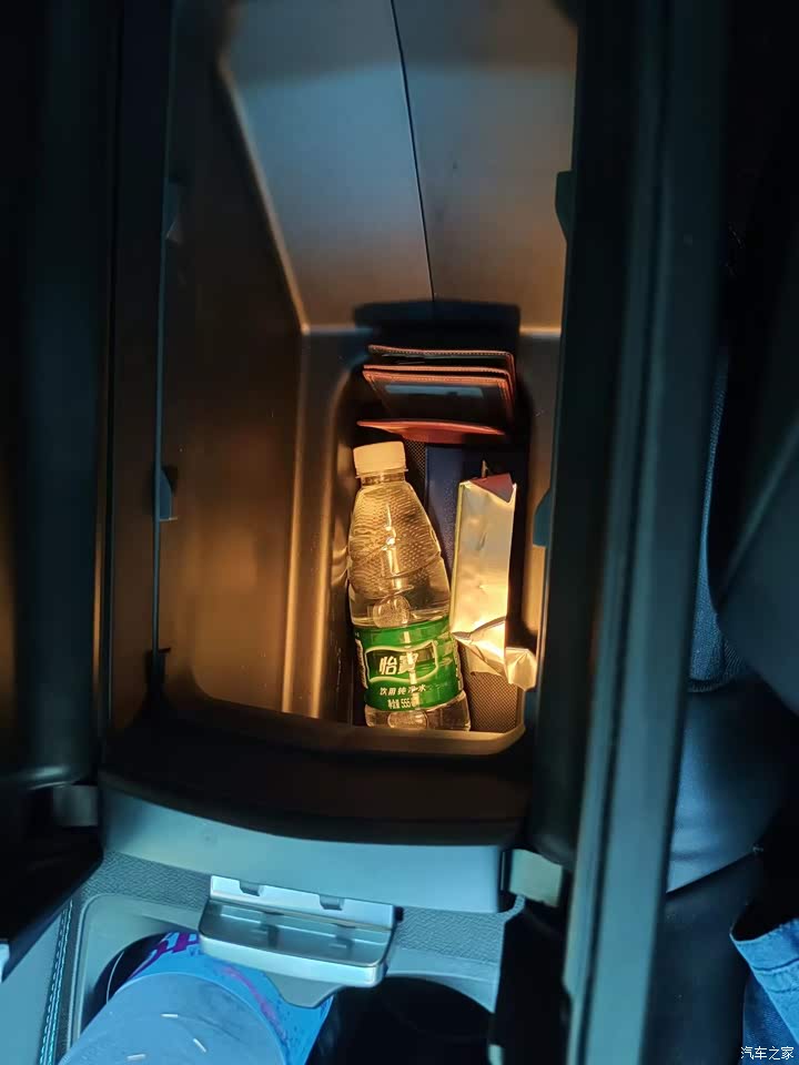 车内有眼镜盒,很是方便。中部还有两个水瓶的插座,还有一个小物品放置的凹槽,大大的方便了小物件的放置。遗憾的是找不到合适的地方放行驶证,若能设计有一个合适的地方放置行驶证就完美了。左门边的水杯空是斜着的,给旁边的空间挨挤压了,不方便。