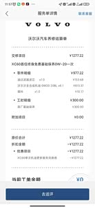 里程到9000公里时,车机就一直提示保养。刚好半年时间跑到了一万公里。由于刚好春节节后,4S保养维修量大,在沃尔沃APP预约保养要到下周去了(APP里面有20公里内免费取送车服务劵,很人性化),就直接开车到了4S排队。整个过程约3个小时,主要涉及排队时间太长,真正保养只花了30分钟。本次首保,只更换了机油机滤,车机升级到2.6版本。可能是首保,其他比如电瓶电量,刹车油含水量等4S店都没检测。去年买车时活动选择的是厂家终生基础保养,故本次保养未花钱,但有价格清单,确实算豪华。 有两点需要注意:1、去年厂家天猫活动送的终生基础保养,一年只能用一次,若一年内里程大于20000公里,就需要自己花钱了。 2、沃尔沃单次保养是10000(±1250)公里,超过11250去保养的话,不能再使用厂家送的免费保养劵,一定需要注意。