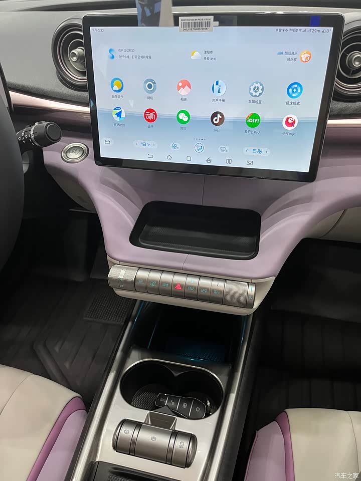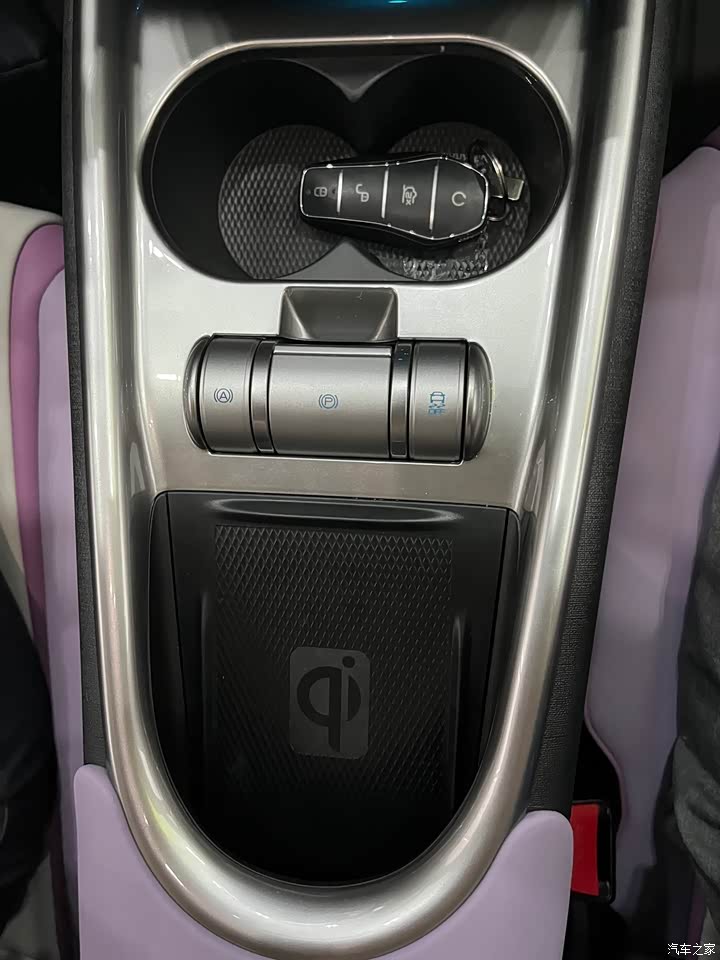 座椅的包裹感还算不错,而且布局蛮细致的,方向盘底部是平滑的设计,还有放手机的小格子,中控那里还有支持无线充电的隔间,操作按钮使用了一排旋转式的设计,比较个性化。