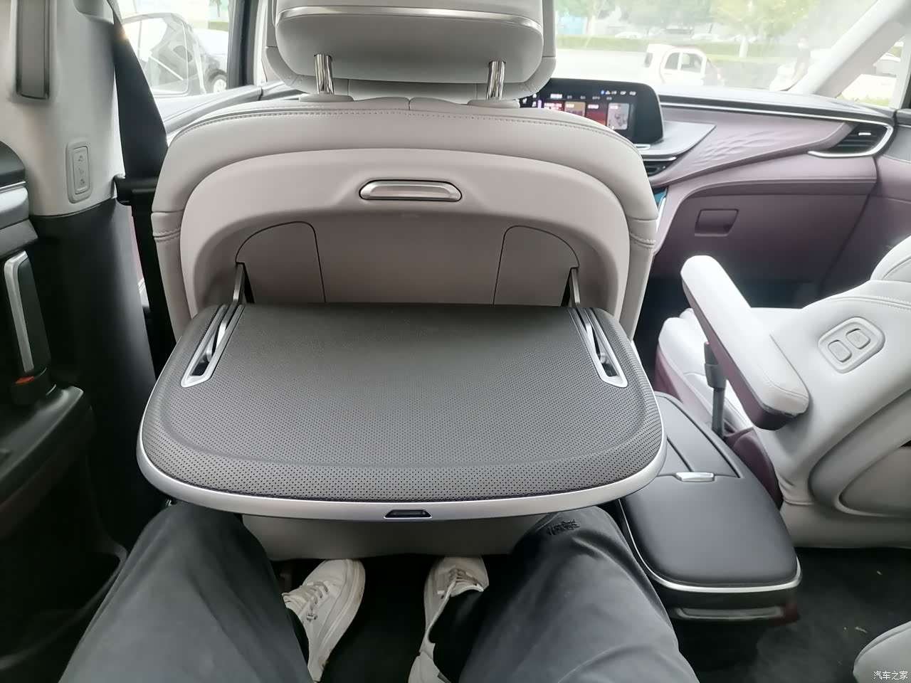 设计特别好的一个地方,就是这个小桌子可以在小桌板上面吃一些快餐,或者是放一个电脑,放个ipad,看个电视,或者办公都特别的方便。车子前后两个天窗,阴天的时候,打开遮阳帘,车里面很亮堂,在下雨天的时候,也是一个非常好的景观。