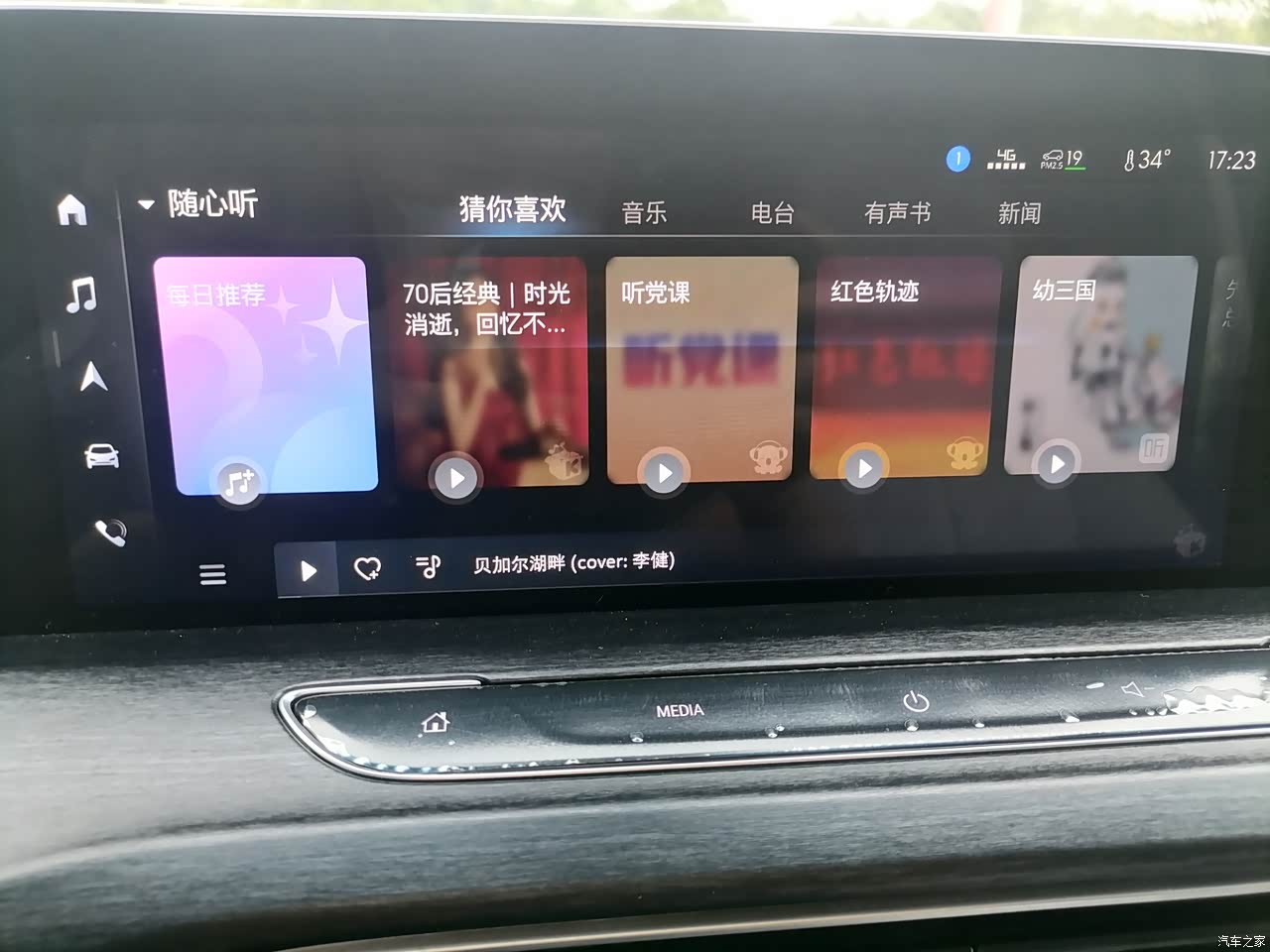 中控台上面的显示屏,里面有一个在线音乐,可以听很多的歌曲,而且自己平时喜欢的歌曲以及音乐上面都有,还可以收藏起来,听起来很方便。GL8的音响效果也特别的出色,音质很好,就是偶尔的时候会出现网络连接不好,而且反应特别的慢。其他地方都还是很好的。