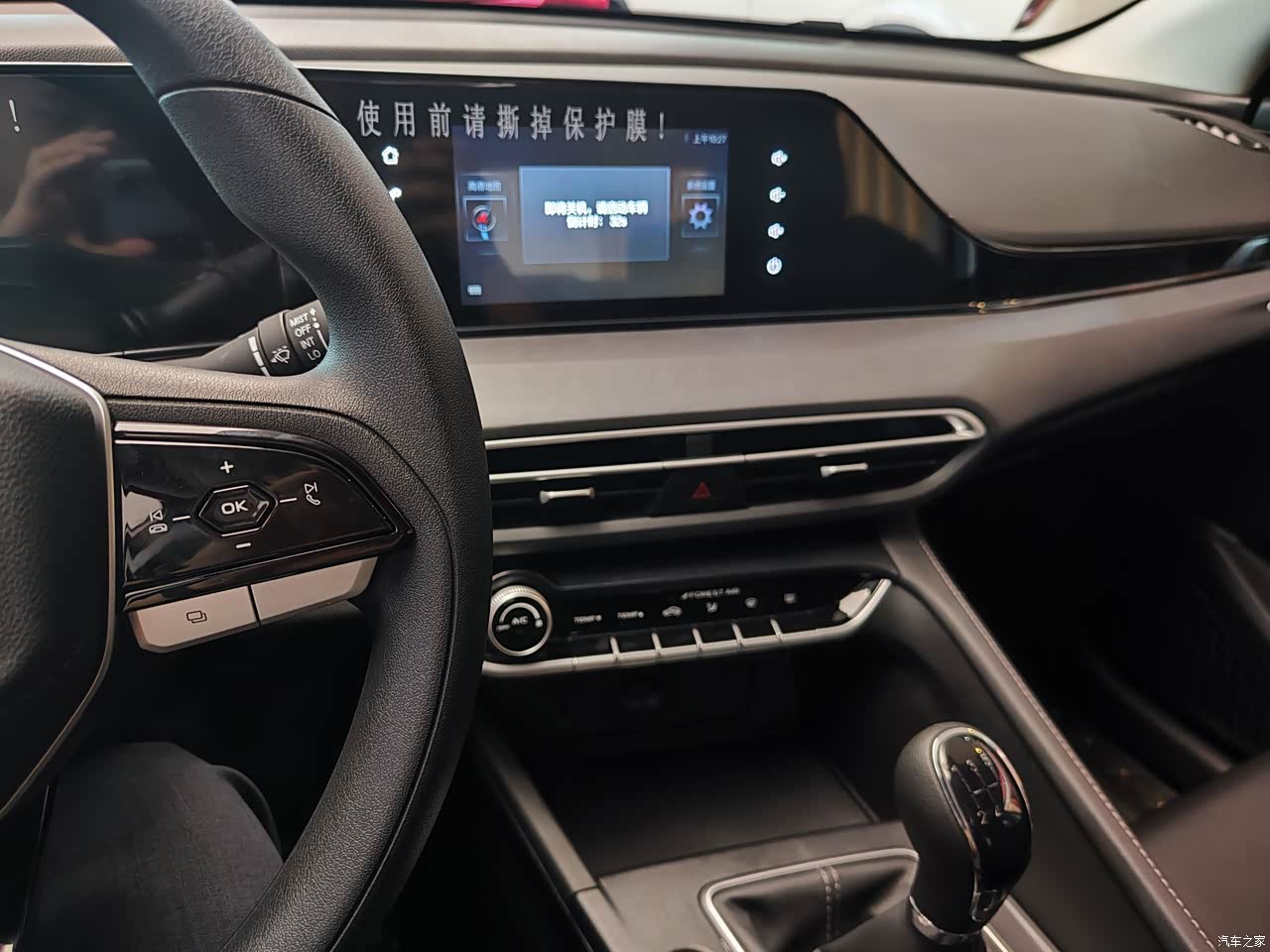 在外观上最标配车型也没有明显区别:铝合金轮毂没减配、LED日间行车灯也没有少、双尾排装饰也有、车窗下沿高亮镀铬装饰条还保留了。就连内饰也是同样的软材质覆盖、黑色钢琴漆按键、3.5寸彩色仪表盘、遮阳板化妆镜这些都与中配车型一致。