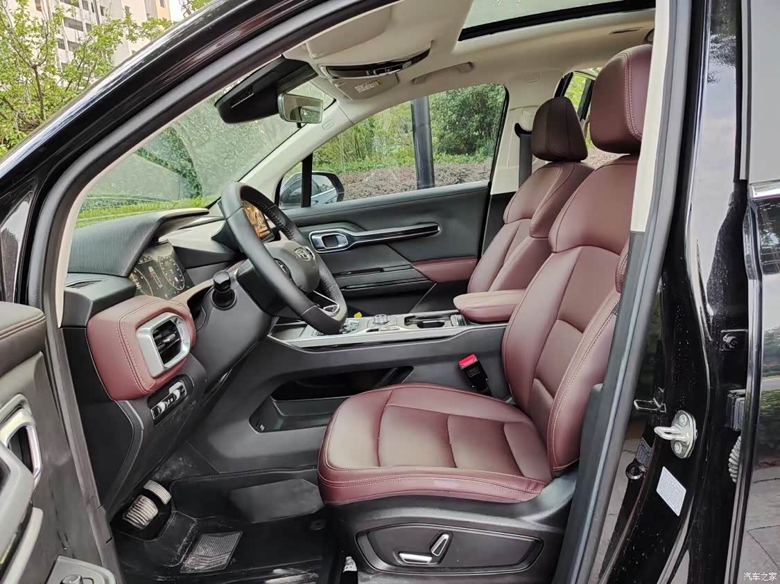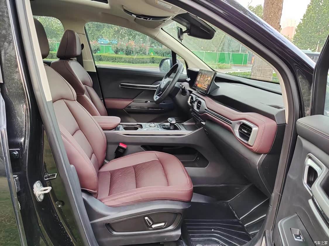 内饰在设计方面是没什么可以吐槽的地方,整个中控台面看着比较的舒服,中控屏幕悬浮的设计,尺寸非常大,清晰度很高,不管是导航还是看其他的都非常的方便,但是缺点还是有的,就是这个车机系统的运行速度实在是难以启齿,越用越卡,而且我这个是顶配的了,内饰软包的材料基本都是仿皮的,真皮好像基本都没有,略显尴尬。