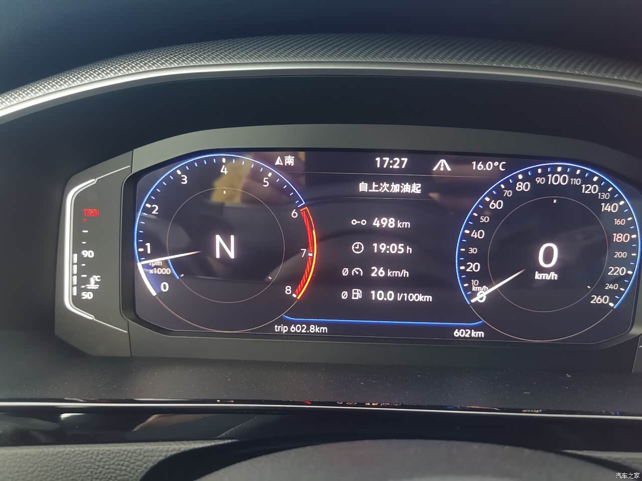 新车油耗综合10个,上班来回32公里,可以走环城高速,市区走走停停,感觉油耗直接上来了,提车后加了个100,开一段,亮灯加满590,油箱够大。