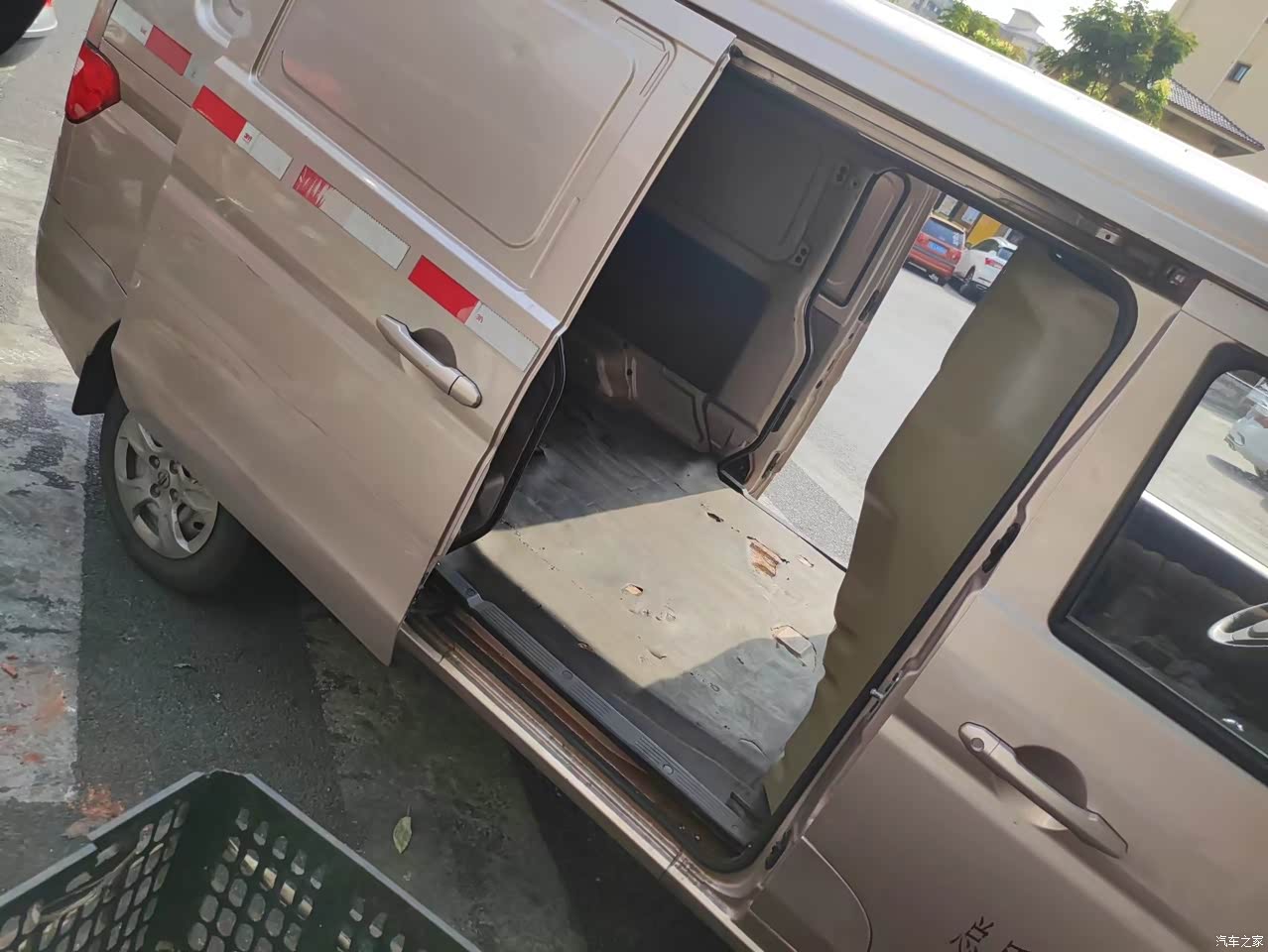 内部的空间还算是比较宽敞的,别看这个车子比较短小但是一个成年人坐在里面还是比较宽阔的。四四方方的,很规整,空间利用率很高。特别对于我这种专门拉货而言,装货也比较的方便,像我们这种做买卖的就是要空间大一点的车。因为它是封闭式的货箱,货物就可以往上堆积。