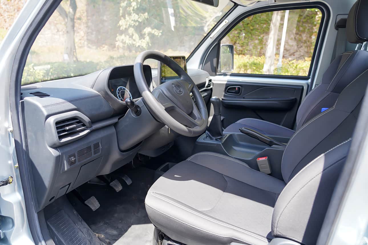 只有主驾驶位和副驾驶位,我身高一米七五,坐进去身体也没有影响,自由活动不成问题。不足的地方在于它毕竟是辆货车,所以在减震方面的表现不算出色,可以理解,但相对来说,比一般的轻卡还是舒服得多。