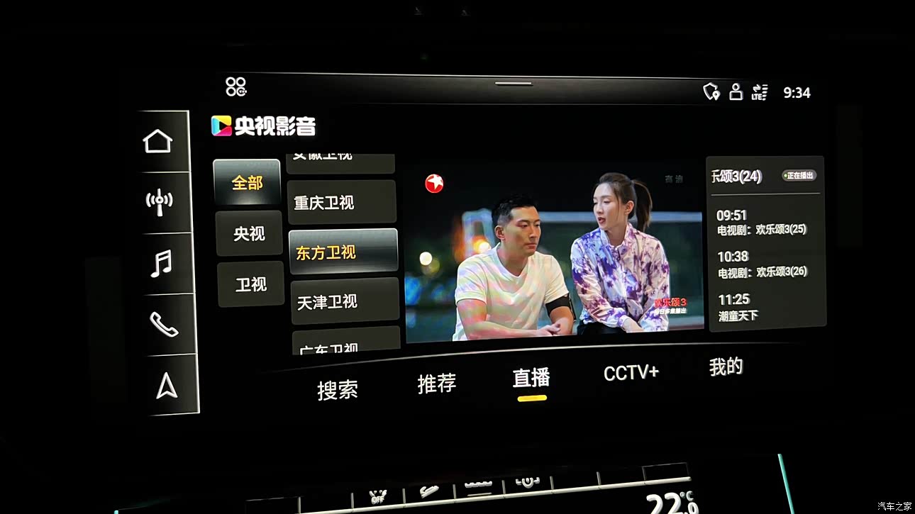央视APP,还可以看卫视直播\n只是在行驶过程中不能观看,也是为了行车安全,合理的