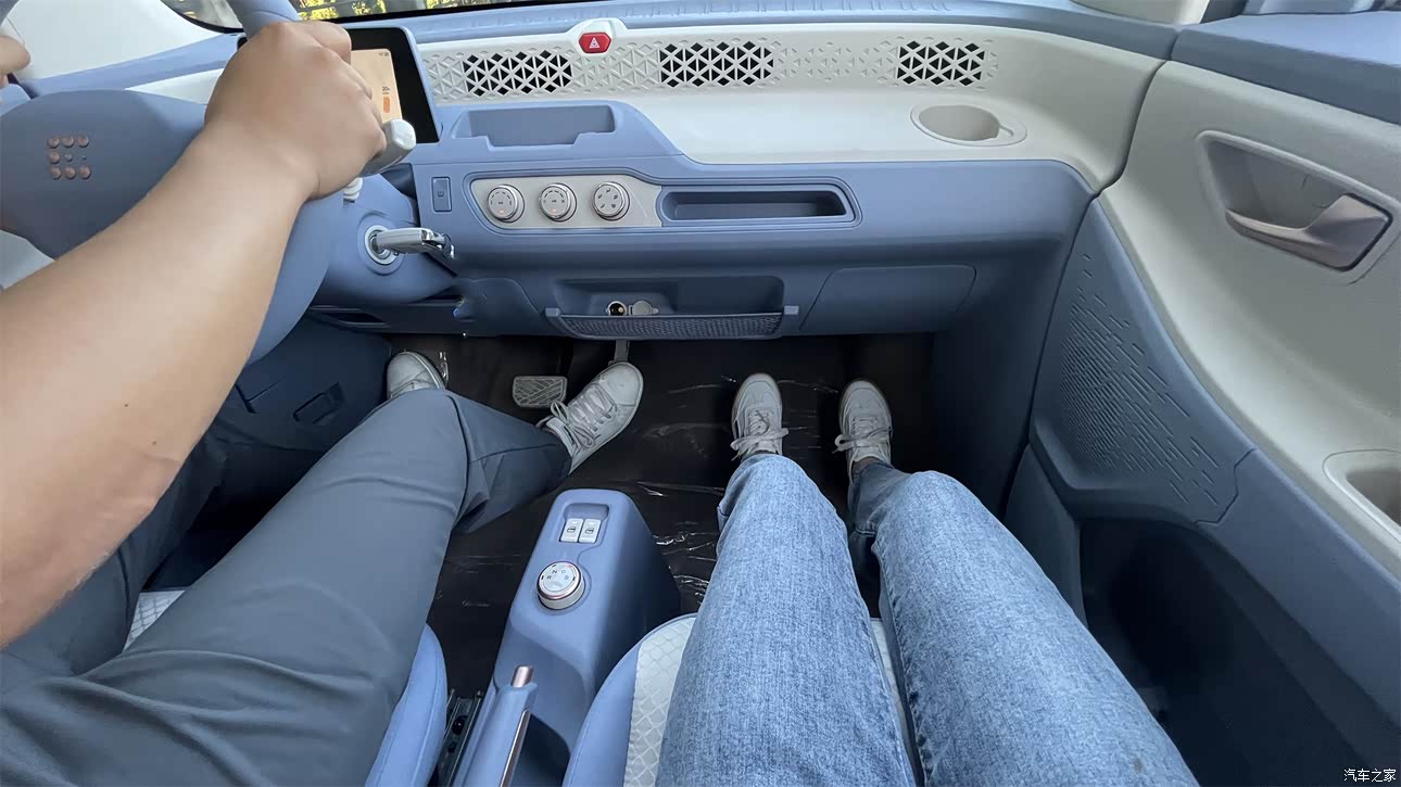 从外面看这个车子真的挺小的,不过坐进来反而会觉得空间一点都不小,还挺惊喜的,前排腿部空间都是通的,腿再长也放得下,有时候买菜都是直接顺手就放在副驾下面,也不用特意多开一次门。后排两个座椅也可以放倒,有时候跟两个小孩出去的话就只放倒一个座椅,用来放东西,能放的东西还挺多的,小儿子的推车,备用的衣服裤子,反正每次出门都是大包小包的,没个车放着真不敢想