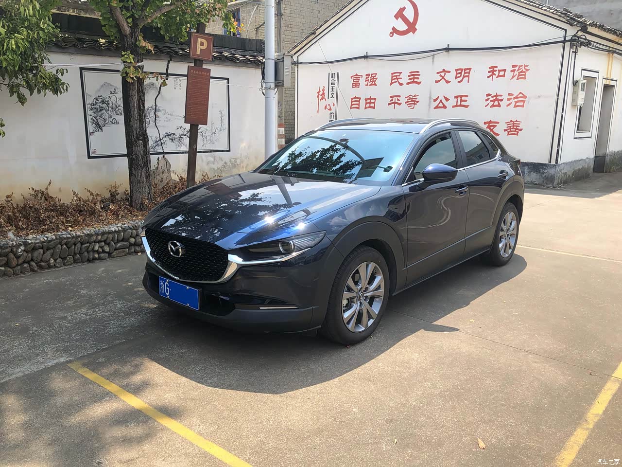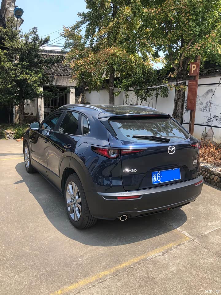 买车之前看了几款车,新款数字高尔夫,新款轩逸!试驾了,但是就是不想买,不知道为什么,我记得很清楚,2022年3月23日刚好休息,带着老婆孩子去了趟长安马自达,第一眼其实看到的是昂克赛拉,听销售说主打车,但是我就是不太喜欢主打车,因为满大街都是,坐了一会我看见了后面的CX30,第一眼就看入迷了,放的是一辆2.0的魂动红!“太美了”,只能这么去形容,马上跟老婆商量了下,倒是没什么意见,(可惜魂动红要加价,就选了晶钻蓝)好吧,那接下来就是价格,谈了一个多小时,搞定,全款购入!至于为什么会考虑买马自达,因为我的老车是11年的马六,陪伴了我快11年了,依然不舍得置换!有感情了!对这个品牌还是比较认可的,马自达的外观虽然不是最时尚,最豪华的,但是无疑是同级别里看的最顺眼的,无论是”魂动2.0”设计理念带来的S形光影腰线,还是“人马一体”设计理念下诞生的狭长车头,以及“少即是多”打造的轻奢简约内饰。 无疑这些都是触动我的点,另外还有“法拉利式”尾灯灯组,天使之翼前灯灯组,在这个价位里也算良心之作! 至于这个车的超宽黑边,有好有坏,好处是防划痕,后期维修便宜,塑料么! 当然没有完美的,有些地方还是有所简配,例如车门甩泥,有几个面变成了塑料,不过这些都不影响我喜欢它!