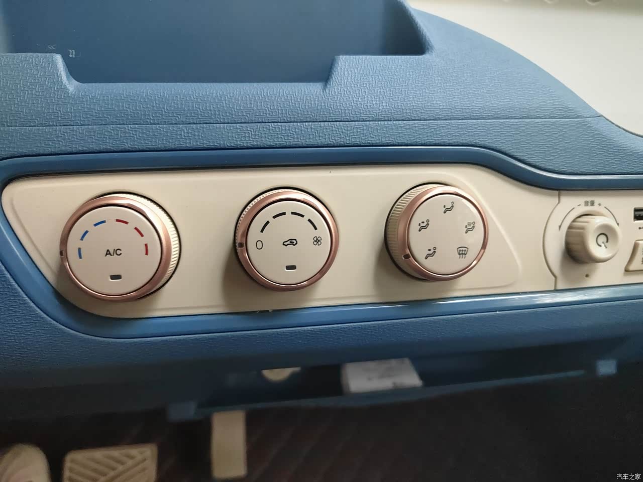 内饰的配色还是很特别的,蓝色和白色的双拼色内饰搭配在一起还是很好看的,中控台就比较简单,但是所有的按钮都是很精致的。