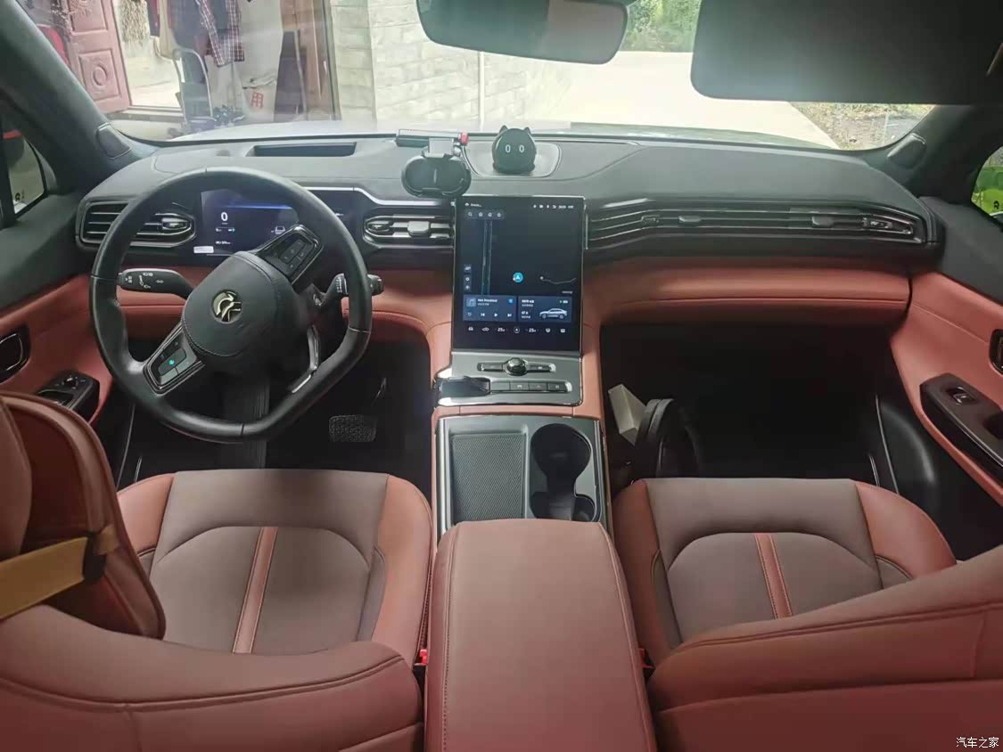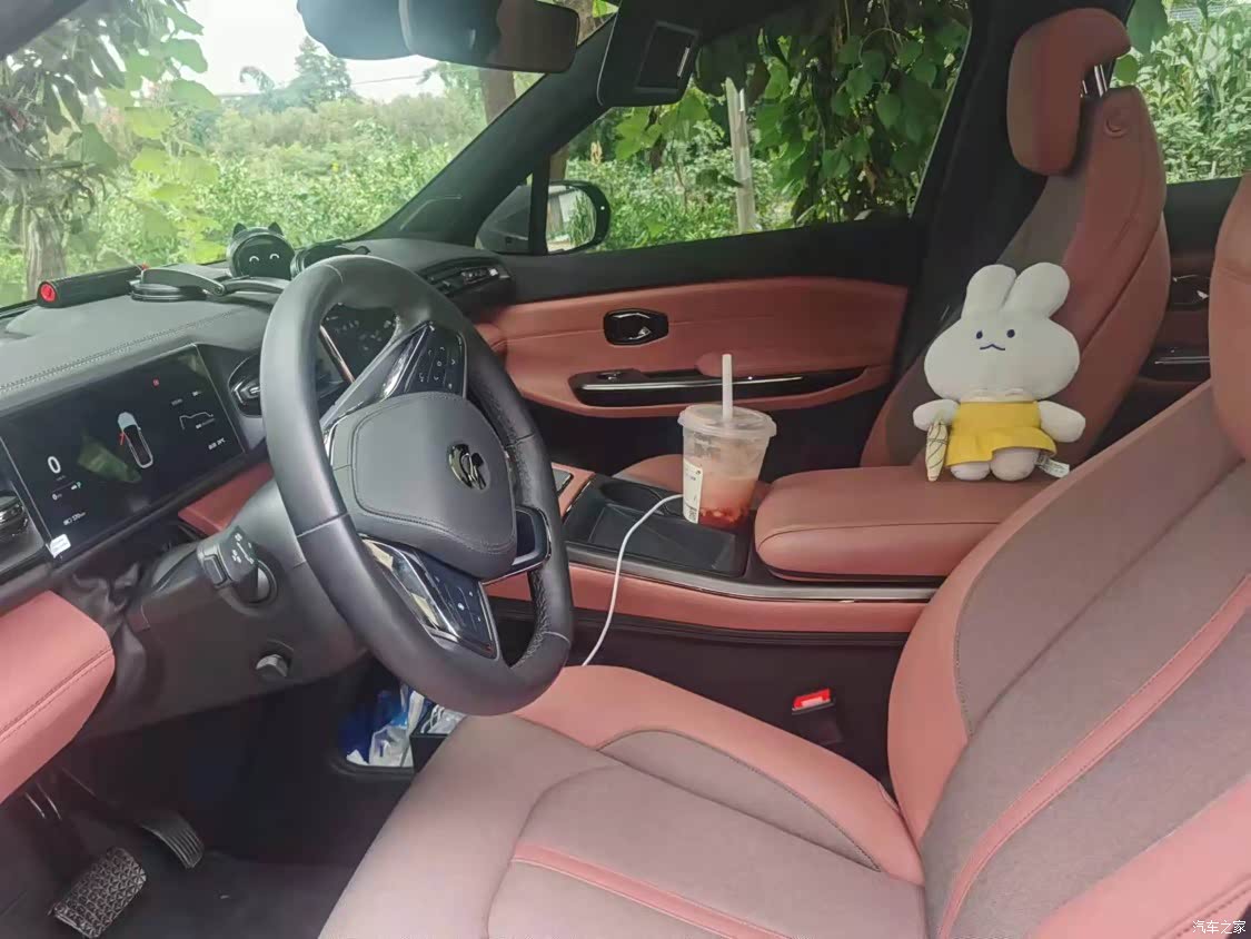 内饰则是选择了我最爱的红棕色,蔚来叫做喜马拉雅棕,这个内饰颜色特别耐看。对于有小宝宝的家庭来说,✌️很耐脏。这个车还有一个真皮版本。我觉得当时有一点后悔的是没有选真皮版的棕色内饰。去交付中心,那天刚好旁边有一台,1C六选的是真皮内饰,当时摸了一下真皮类似的质感跟这个质感真的是差别太大。而且真皮内饰还带座椅通风。夏天对于女生来说座椅通风真的是太重要了。现在这个车已经用了几个月了没有办法再去选择座椅,通风。内饰还有比较满意的是氛围灯,一圈围绕在车内的氛围灯,10多个颜色可以随意切换,这是之前mini做不到的哈哈。