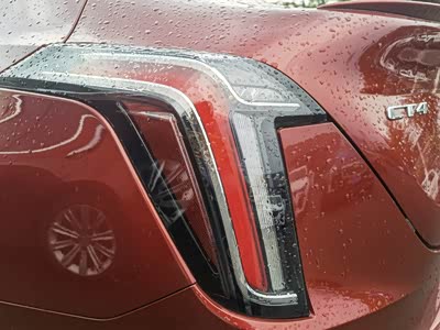 很特别的设计,还有精致耐看的车身漆,一开始是被车头吸引,然后发现它的车灯很耐看,仿佛有星星在里面,细心一看还能找得到凯迪拉克标志,然后车尾灯做熏黑撞色设计,很特别。然后就是看起来很犀利流畅的线条,其实一摸都很圆润的手感,雨水在它身上就是锦上添花的效果。