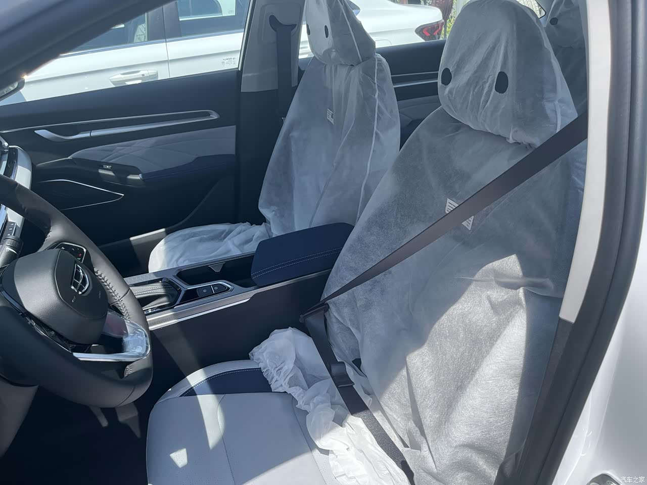 内饰的话大面积都是皮质软包的,这个质感大大的提升,好多这个价位的车子内饰全是硬塑料,看着就没有档次。这点我非常的满意。而且我的内饰是蓝白双拼的,颜色很好看,我感觉这个蓝色很有中国风的感觉,颜色饱和度没有很高,就是刚刚好的感觉,总之我就是非常喜欢。