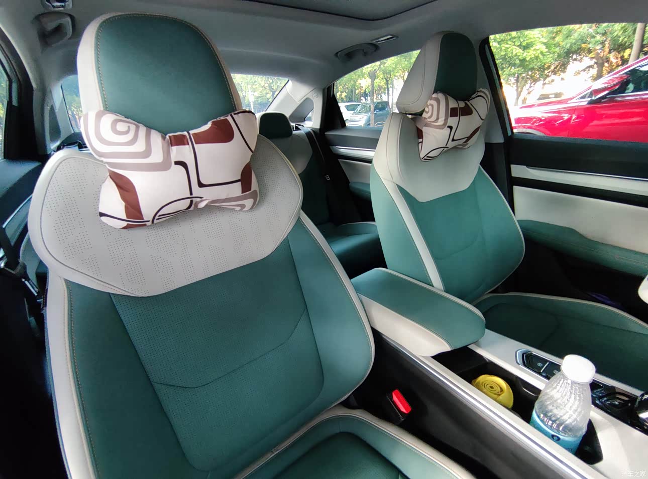 内饰元气森林配色显得有青春活力,令人坐起来心情愉快。座椅采用翻毛皮和饰板采用软包覆材料,而且大量采用环保材料,新车刚开回来时车内几乎没有刺激性气味,显得十分高档。