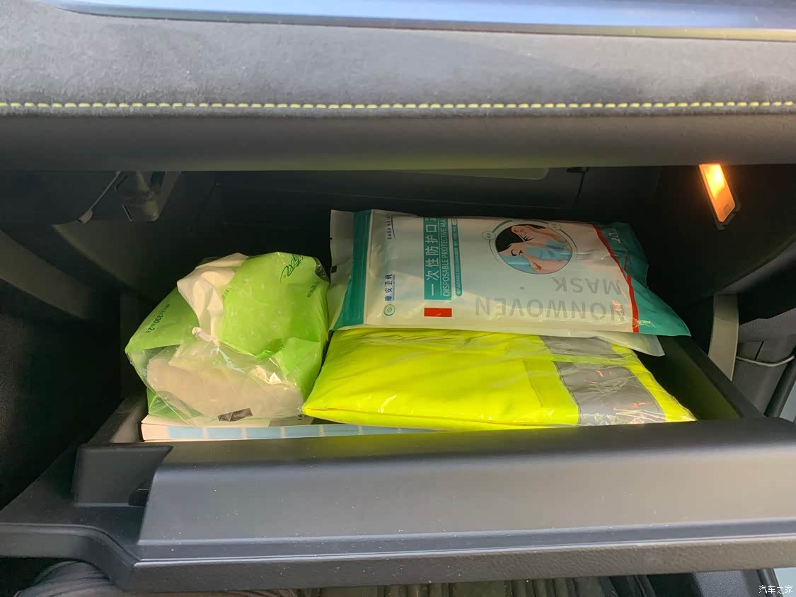 手套箱和扶手箱的空间都还不错,放点应急的药品之类的东西绰绰有余。