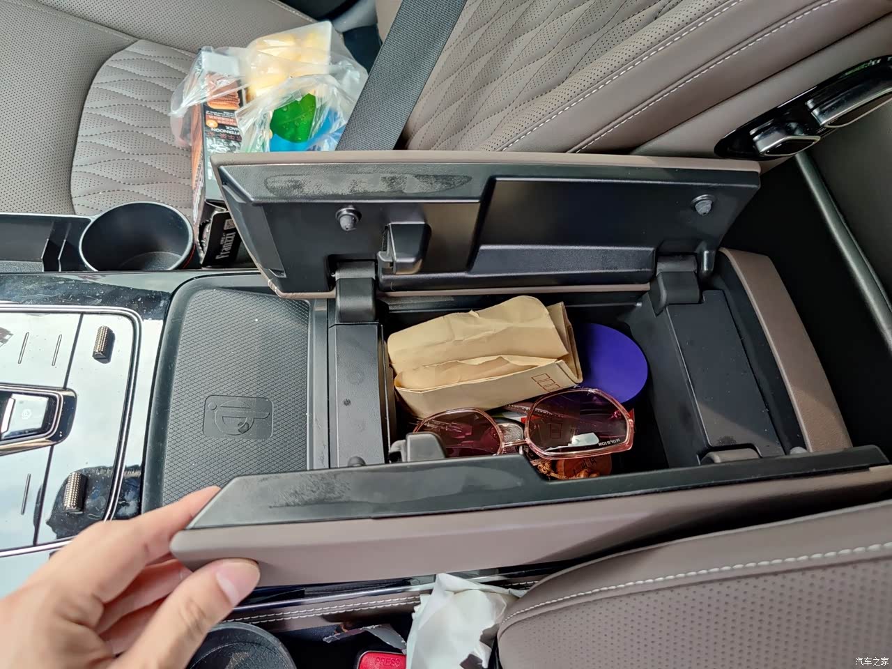 手套箱的空间只能说中规中矩,但是里面有植绒的材质,这点给个好评,门板上的储物空间也不错,可以放好几瓶矿泉水了。