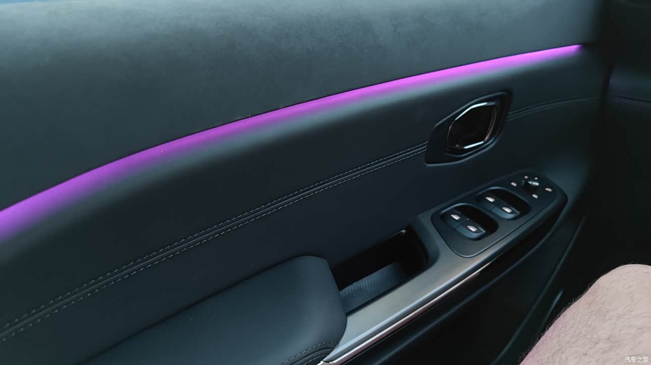 氛围灯有十种颜色可选,配黑色内饰在夜晚格外漂亮。化妆镜还有化妆灯的设计太给力