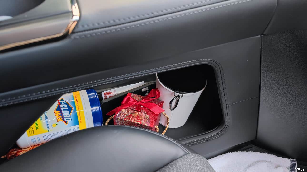中控下方的储物格真的大,放个书包都没问题。油车的空间利用率确实和电车比不了。中间的保密柜大小绝对可以,很深。而且可以加密,借给别人车开也翻不了你的专属柜子,很人性化