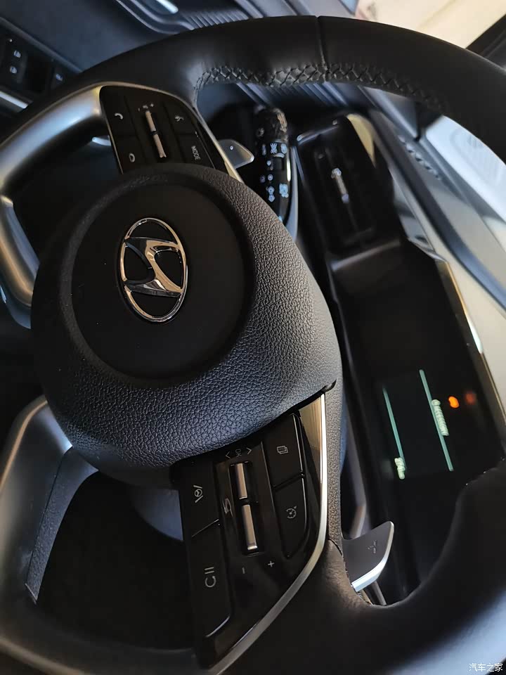 前排设计也和途胜l大致一样,10.4英寸的中控大屏显得情绪不错,按键是换挡很方便,方向盘握感不错,仪表仪表盘平直,液晶仪表设计感很强,很实用,座椅采用2+2+3的座椅布局,我选择了深色内饰,深色好打理。