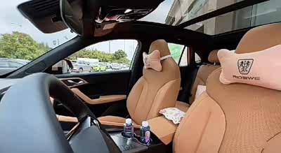 内饰非常简洁大方,我自己买了个脚垫和座椅垫,本来完全不需要,但是我是觉得内饰看起来就价格不菲,还是适当保护一下,新车毕竟还是深怕弄脏弄坏一点,我妈还笑话我,说别人都是用几年都是像新车,是我多虑了。摆了个小摆件放在前面挡风玻璃处非常温馨,算是我的另外一个小家。