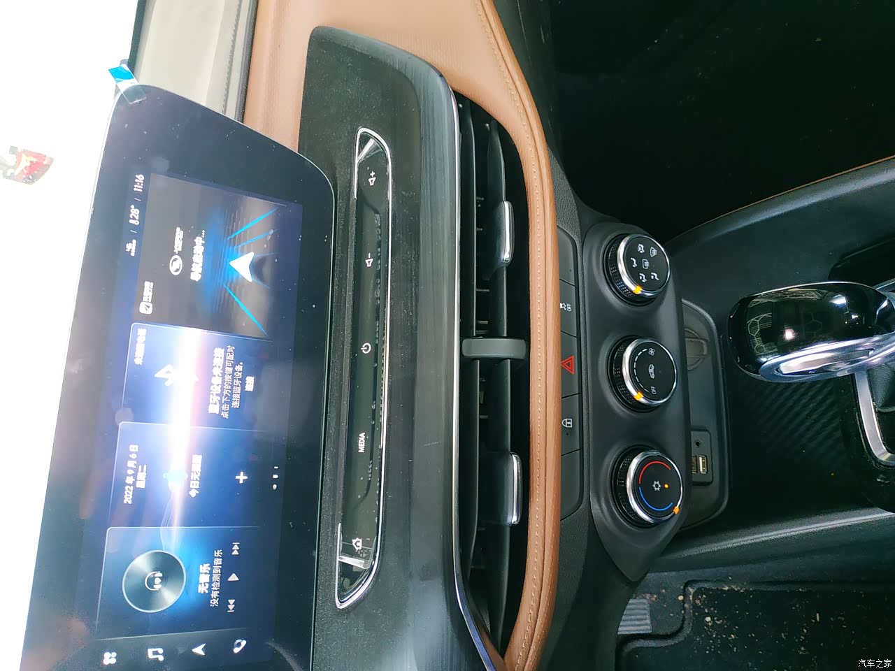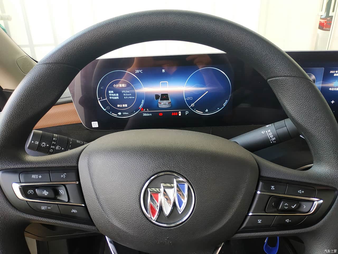仪表盘和中控屏都是10.25寸大屏幕,中控屏支持在线音乐和在线地图功能,每年还赠送100G流量,仪表盘有两种主题切换,还能做背景地图,车辆的基础信息都能通过仪表盘查看。全车共有六个喇叭,音质效果还算可以。中控屏支持Carplay和Carlife两种投屏映射功能,安卓苹果手机还都方便使用。车辆有车联网功能通过安吉星APP可以远程启动车辆、四门上锁解锁和车窗的升降功能。还能通过安吉星查看车辆定位剩余油量和四轮胎压,能对车辆的基础信息一目了然的了解到。座椅采用棕色仿皮打孔内饰,也方便清理座椅卫生,