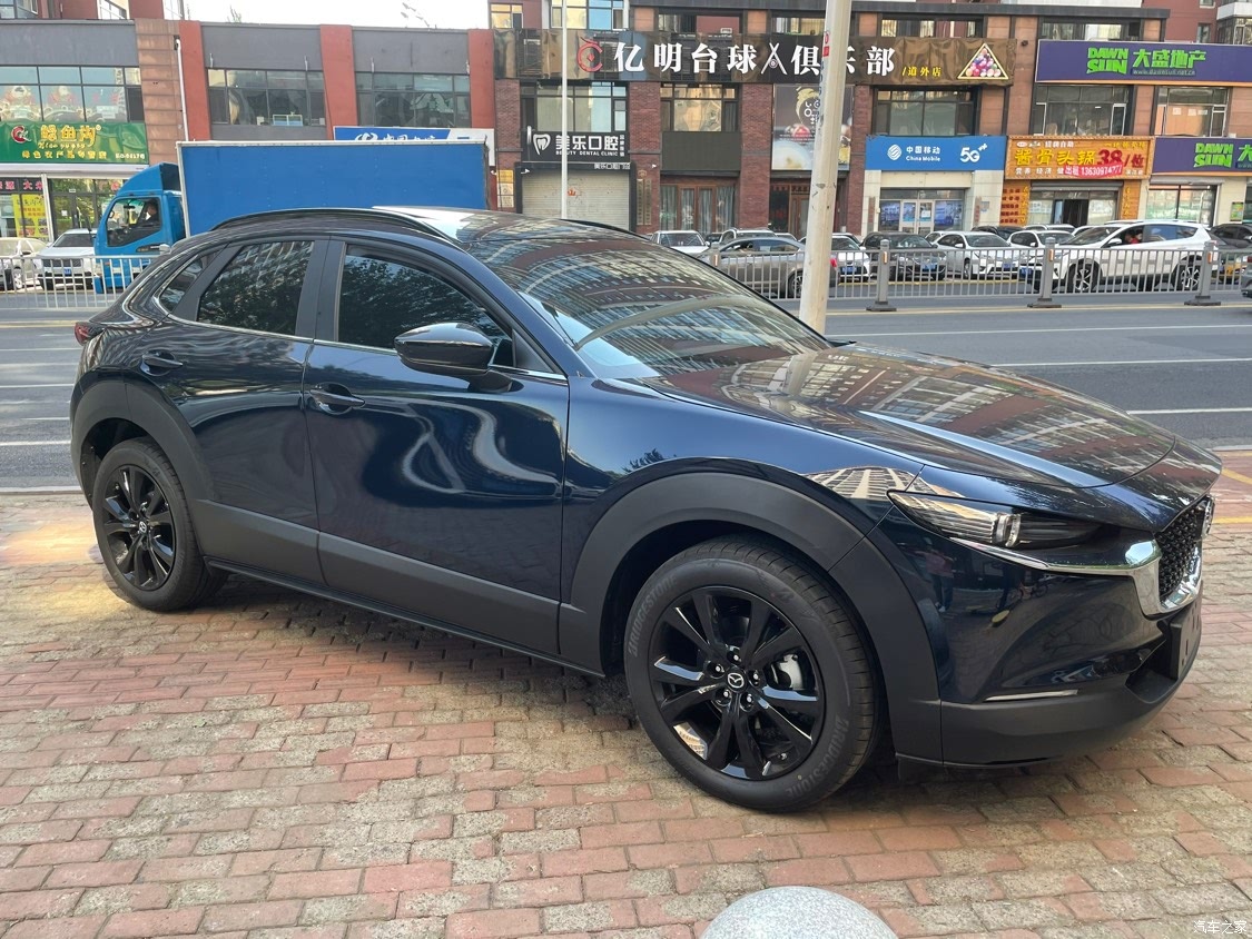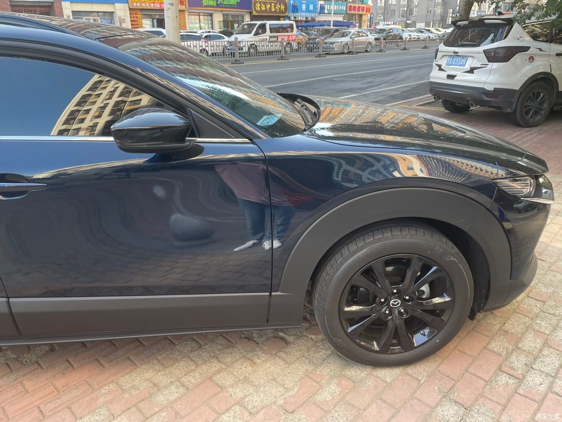 提车的时候刚好黑曜版上市,提升了了一个配置,多加一千块钱就可以。这个熏黑轮毂真的是太值了,太符合cx-30的运动气质,尤其配上cx-30的大轮眉,简直是完美搭配。