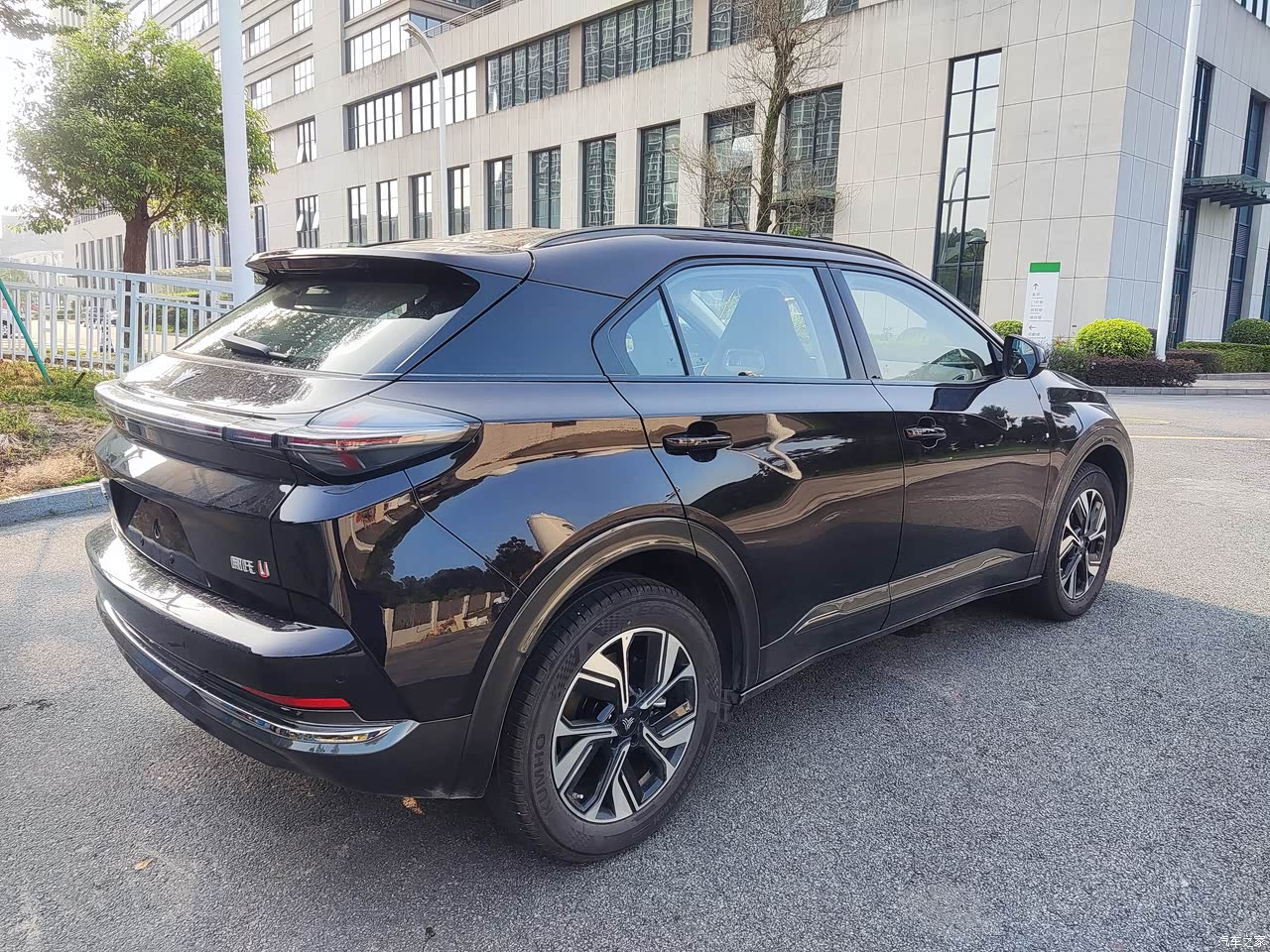 哪吒U其实看起来不太像SUV,更像是是一辆两厢车的CROSS版本。不到4米6的车长却有2770mm的轴距,再加上只有1米6出头的车高, 所以整体看起来要低趴一些。至于喜不喜欢这种风格就因人而异了,我个人还是比较喜欢的,开在路上很独特。