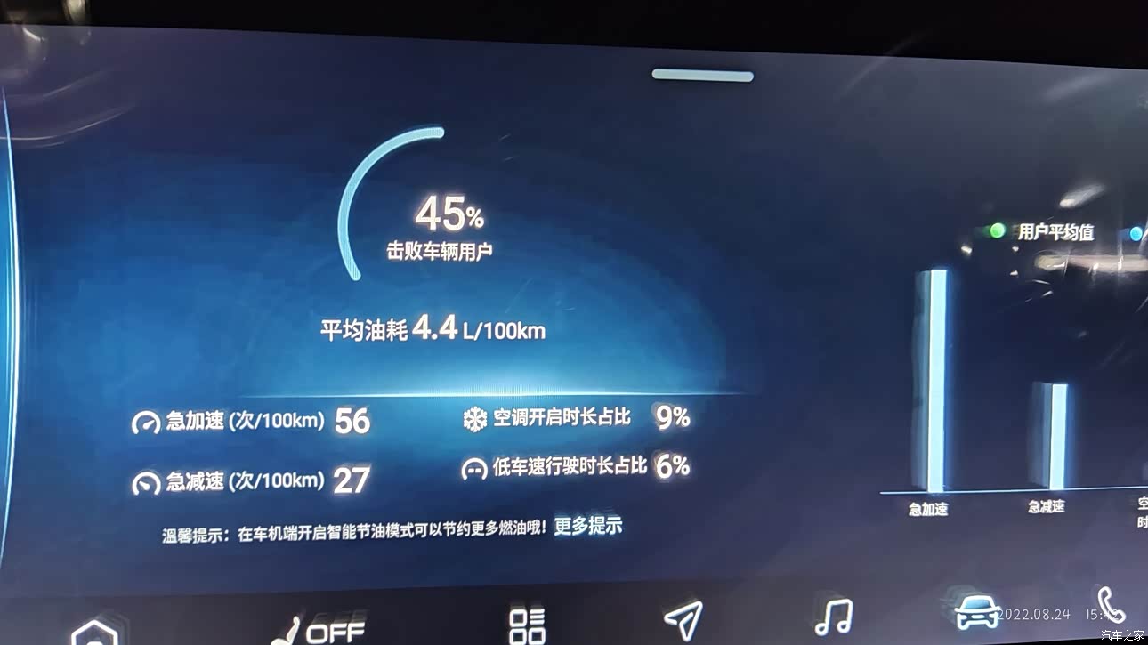 我的使用环境主要是市区和少量的省道和高速。主要以市区内的通勤为主。多次3.5左右的油耗,目前560多公里平均油耗4.27l/100km.同级别里很优秀了!